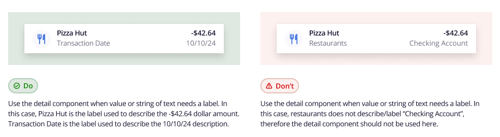 The Item component is composed of five customizable slots (illustrated above), providing flexibility in structure and content. It supports the inclusion of the Detail and Currency components for enhanced data presentation.
